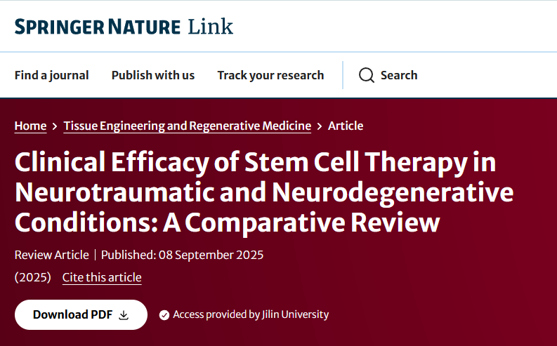 參考資料:[1]:Ku, J.B., Pak, R.J., Ku, S.S. et al. Clinical Efficacy of Stem Cell Therapy in Neurotraumatic and Neurodegenerative Conditions: A Comparative Review. Tissue Eng Regen Med (2025). https://doi.org/10.1007/s13770-025-00757-2