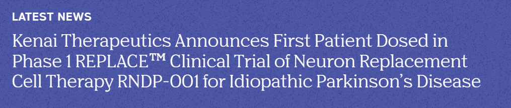 2025年12月16日,Kenai公司在帕金森病細胞療法I期臨床試驗中為首位患者給藥。預計2026年將公布參與者的耐受性、安全性和腦成像方面的初步數據。