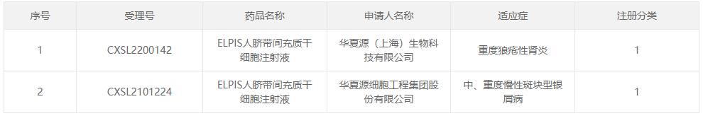 今日,據國家藥品監督管理局藥品審評中心(CDE)官網最新公示,華夏源(上海)生物科技有限公司(以下簡稱“華夏源”)“ELPIS人臍帶間充質干細胞注射液”新適應癥臨床試驗申請(IND)已獲得受理(受理號:CXSL2300030)。申報適應癥為:中、重度宮腔粘連。