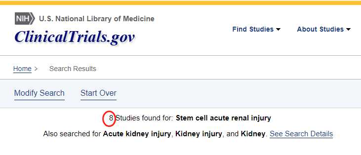 截止目前,已經(jīng)有8項(xiàng)間充質(zhì)干細(xì)胞治療急性腎損傷的臨床試驗(yàn)注冊(cè)在美國(guó)國(guó)立衛(wèi)生研究院的最大臨床試驗(yàn)注冊(cè)庫http://clinicaltrials.gov上。
