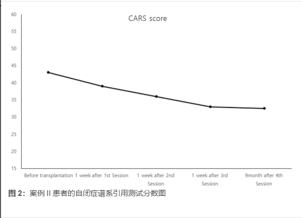2019年11月至2020年1月進(jìn)行臨床治療,選擇兒童自閉癥評定量表(CARS)評分>60分的兒童2例。從臍帶中分離出間充質(zhì)干細(xì)胞。注射用細(xì)胞數(shù)為1×106/kg。該程序每周重復(fù)4~6次。