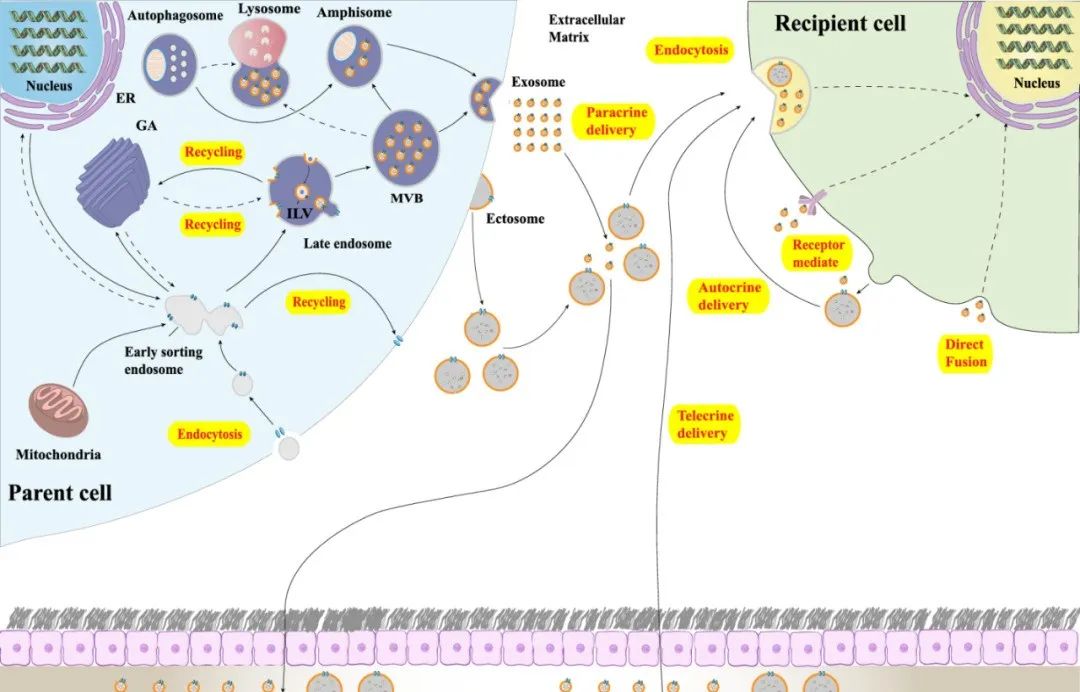 - 2、細胞外囊泡是由外泌體、胞外體和不同類型的小囊泡組成的,區分不同類型囊泡的功能能夠增強NSC-EVs的治療效果。