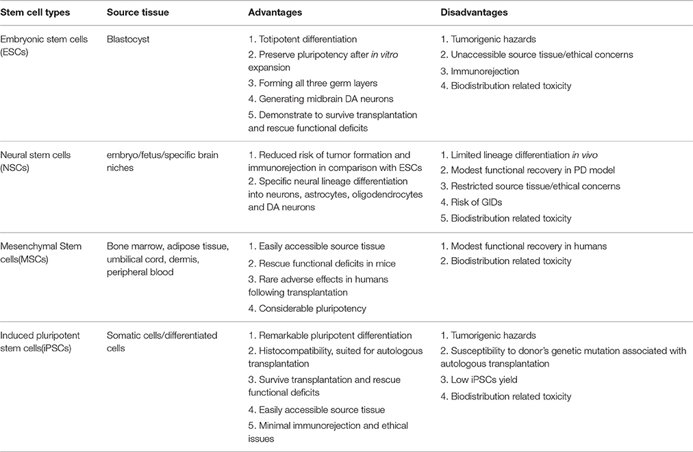 用于帕金森病治療的干細胞亞型的優缺點