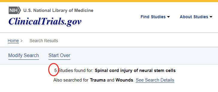 當(dāng)前,隨著干細(xì)胞研究的不斷深入,越來越多的學(xué)者致力于將間充質(zhì)干細(xì)胞等不同類型干細(xì)胞應(yīng)用到脊髓損傷治療相關(guān)的研究中。截止至目前,已有5項(xiàng)注冊的神經(jīng)干細(xì)胞治療脊髓損傷相關(guān)臨床試驗(yàn)登記注冊在clinicaltrials.gov。