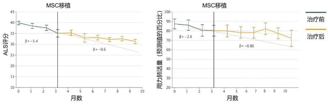 結果表明,14位受試者耐受良好,用力肺活量的惡化速度減緩,漸凍癥的功能評分下降減慢,治療后6個月病程進展至少改善了25%,顯示了細胞移植在治療漸凍癥時的巨大潛力。