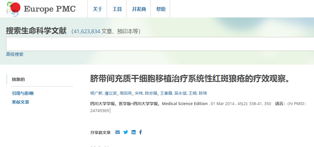 2014年3月25日,南京大學(xué)醫(yī)學(xué)院附屬鼓樓醫(yī)院在國(guó)際期刊《Arthritis Research and Treatment》上發(fā)布了一篇《臍帶間充質(zhì)干細(xì)胞移植治療活動(dòng)性和難治性系統(tǒng)性紅斑狼瘡:一項(xiàng)多中心臨床研究》的研究結(jié)果。