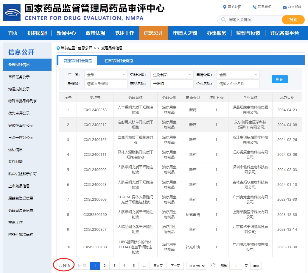 | 1 | CXSL2400258 | 人羊膜間充質(zhì)干細(xì)胞注射液 | 治療用生物制品 | 新藥 | 1 | 源品細(xì)胞生物科技集團(tuán)有限公司; | 2024-04-23 |