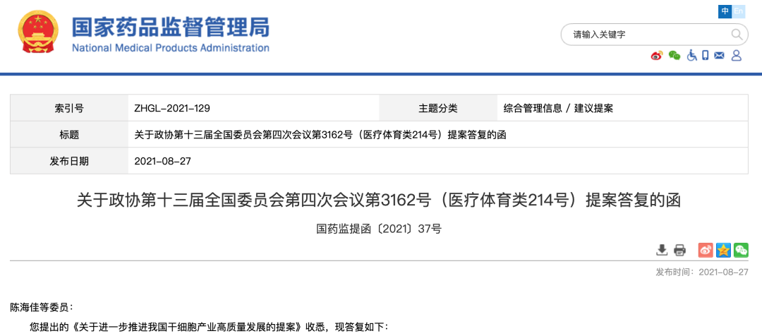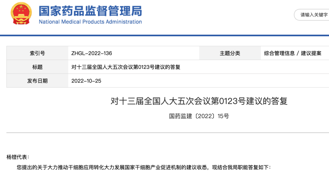 《關于進一步推進我國干細胞產業高質量發展的提案》