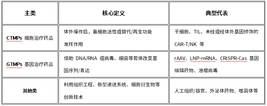 新政首次在官方文件中將先進治療藥品(ATMP)明確劃分為三大核心類別: